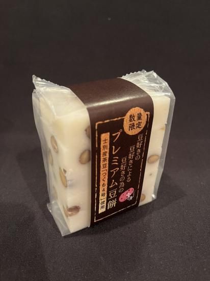 昔ながらの製法を守り、セイロで蒸し、臼杵で搗き上げた本物のお餅です。お餅の香り・粘り・コシが違います。昔懐かしい、少し塩が効いたお餅に士別産茶豆【つくも4号】の旨味が際立つ、数量限定プレミアム豆餅です。